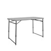 - This fold-in-half portable utility table comes in a neutral gray color to match any aesthetic