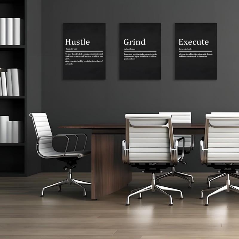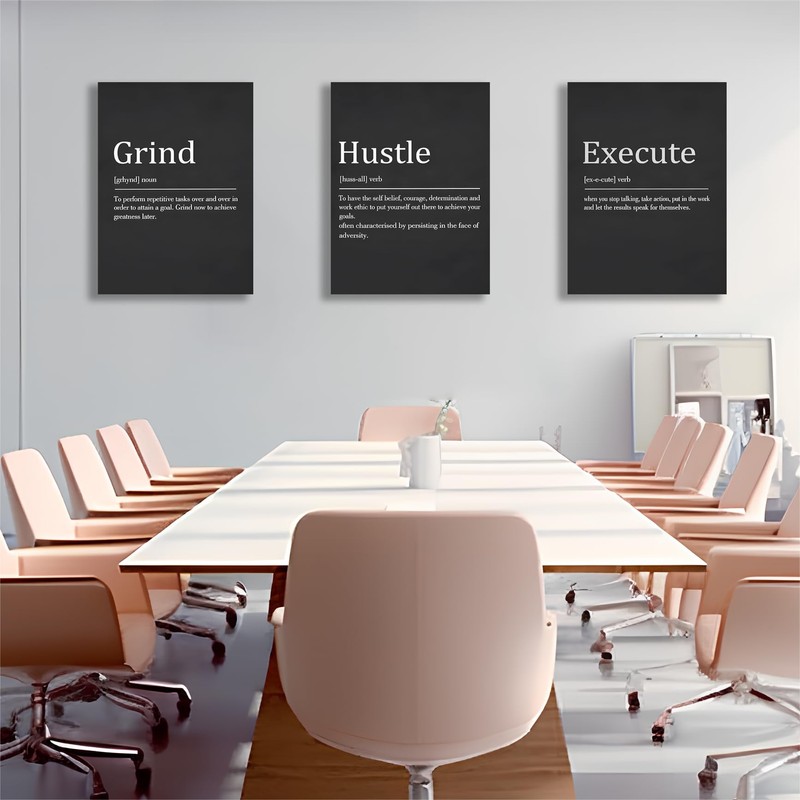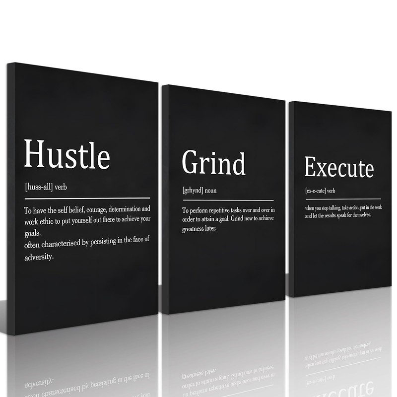 COSCTOR Set of 3 Motivational Wall Art Canvas Grind Hustle Execute Black and White Wall Decor Inspirational Words Quotes Posters for Home Office Workplace Proverbs Living Room Paintings(Framed,16x24)