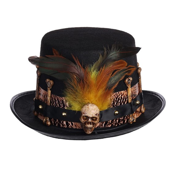 - Witch Doctor Costume Hat, Voodoo Doctor Upper Hat, Gothic Punk Top Hat, Skull Bone Hats for Men Women, Feather Cylinder Hat, Voodoo Hats
