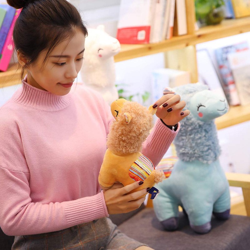 - HIGH QUALITY PLUSHIES STUFFED ANIMAL - The machine-sewn alpaca plush toys is made of extra-soft short plush fabric cover and stuffed with premium-quality soft fluffy polyester cotton material. Durable a child-friendly. It's cute, fluffy, smooth and comfortable to wrap around your arms and legs. Wash the llama plushies toys with cold water with air dry.