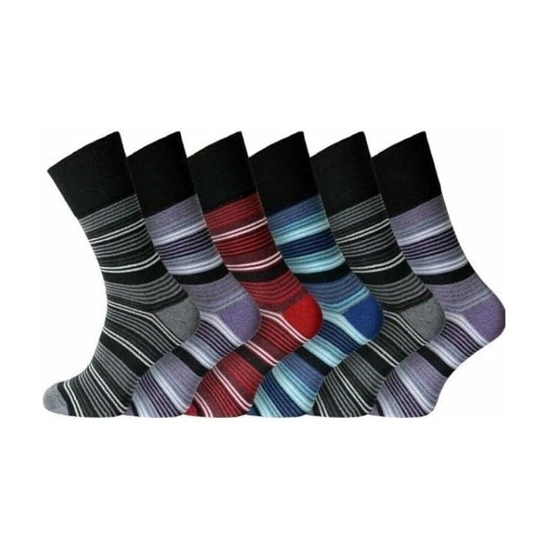 COSHAL® 6 Diabetic Socks Mens design socks Wide Elastic Cotton Non-Binding Neuropathy Loose Top Soft Grip Socks Oedema Friendly Swollen Feet Legs 3 & 6 Pairs Size UK 6-11 LINE/STRIPE