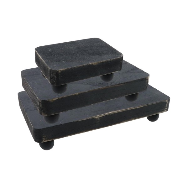Coshar Wood Riser Display Pedestal Stands Black Wooden Risers for Display Stackable Pedestal Stand Wooden for Decor Home Kitchen,3 Sizes Black