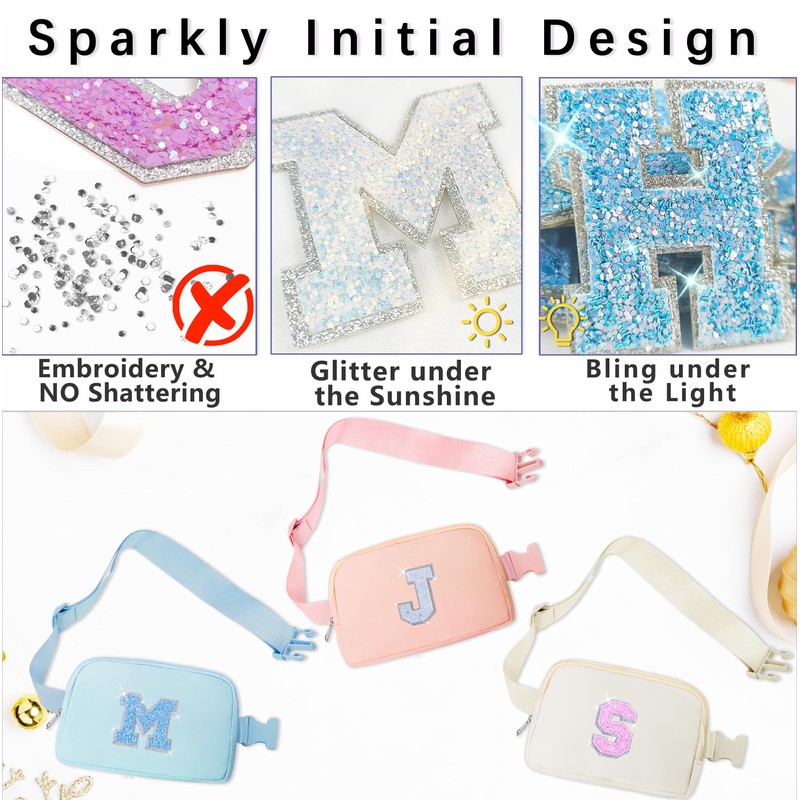 - [Pink Initial Fanny Pack for Girls with Gift Box Package] Preppy floral gift package designed with initial letters embraced by heart love—“Your name is always in my mind”; monogram sparkly bling letter patch A-Z adds charming to girls fanny pack/crossbody purse/belt bag.