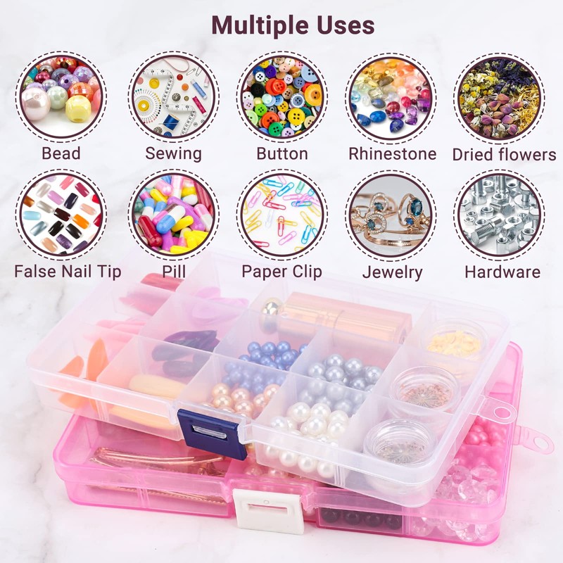 Funciona perfecto para guardar objetos pequeños, como aretes, abalorio, hallazgos, piedras preciosas, barra de resorte, puntas de uñas postizas, purpurinas, hojas brillantes, suministros de oficina, píldoras, algunas pequeñas herramientas de maquillaje, letras de cartón, probabilidades y extremos, etc.