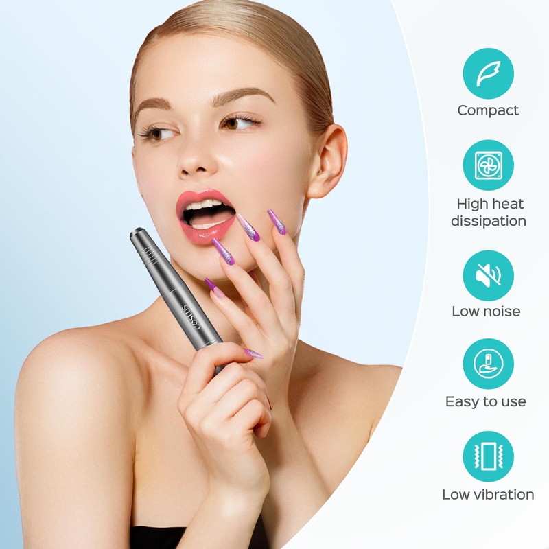 Durability, low noise, and low heat are key features of this nail drill. Equipped with an upgraded motor, it boasts powerful performance and good heat dissipation that extends its service life. You can enjoy a smooth and quiet operation without worrying about excessive heat build-up.