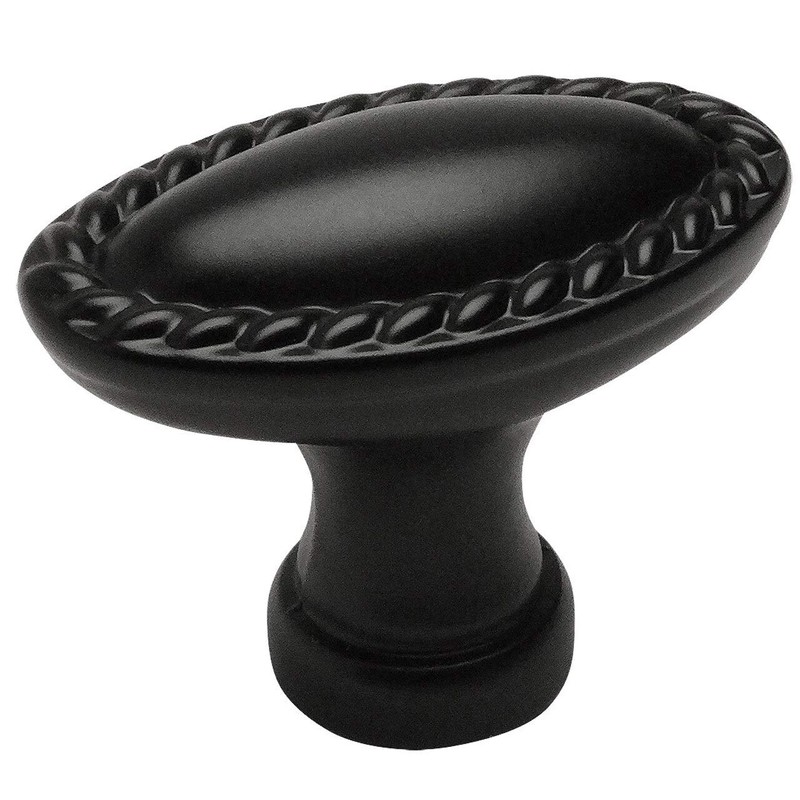 Cosmas 10 Pack 4116FB Flat Black Rope/Scroll Cabinet Hardware Oval Oblong Knob