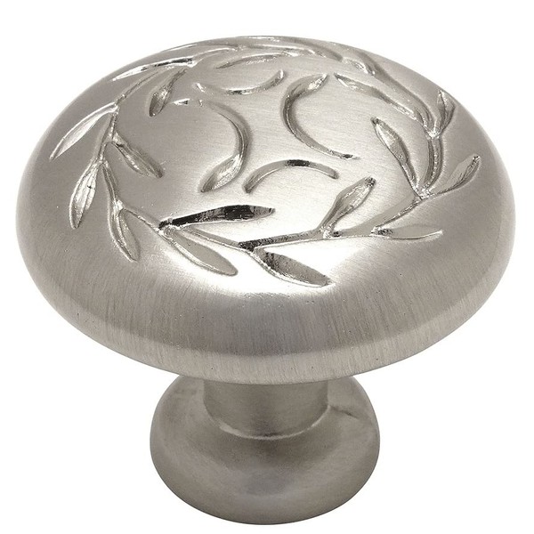Cosmas 5 Pack 464SN Satin Nickel Leaf Cabinet Hardware Round Knob - 1-1/4" Inch Diameter