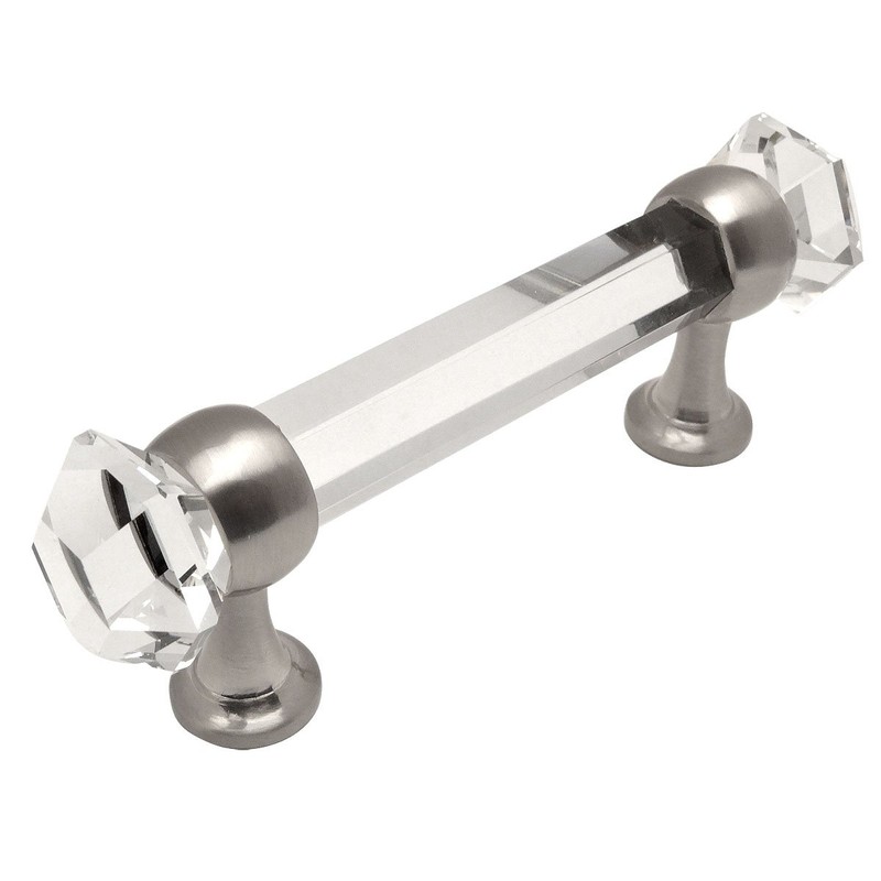 Cosmas 6393SN-C Satin Nickel with Clear Glass Cabinet Handle Pull - 3" Inch (76mm) Hole Centers