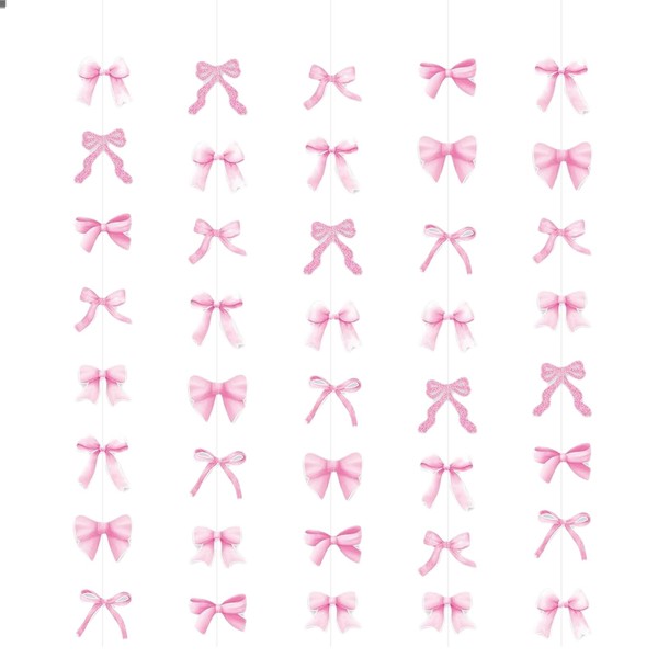 - ELEGANT COQUETTE DESIGN The pink bows party decorations from Cosmeria are designed with an eye for sophistication and playfulness. The delicate pink tones and filigree bow details embody a stylish coquette aesthetic. These decorations add a touch of charm and elegance to any celebration and make it an unforgettable experience