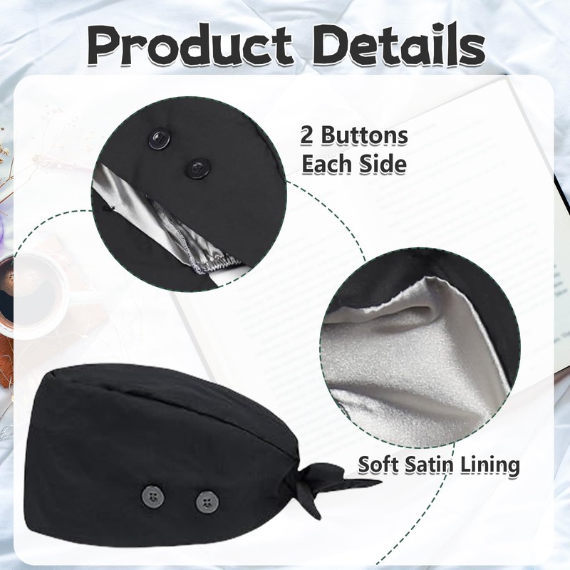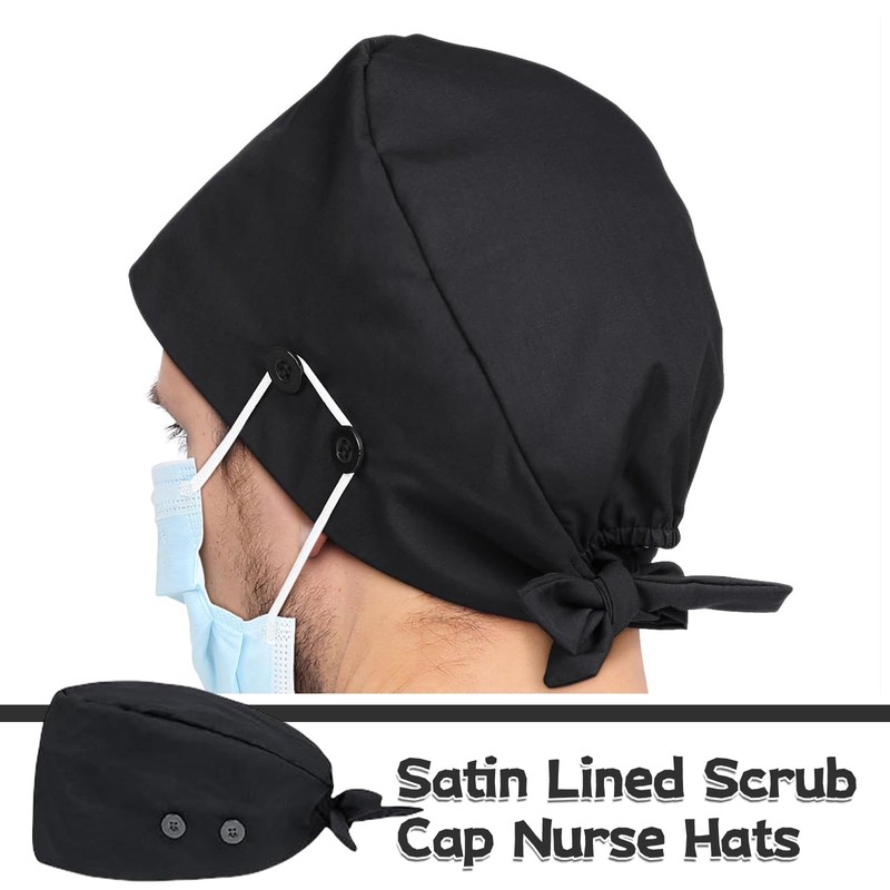 Cosmeria Surgical Cap Women And Men, Satin Lined With 2 Layers, Including Key Fob, Comfortable Fit With 4 Buttons For Mask Attachment