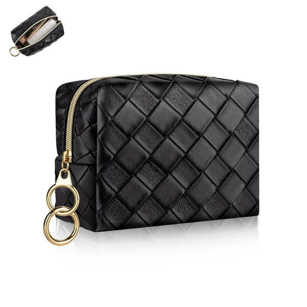 Cosmetic Bag Small Makeup Bag for Women Mini Cosmetic Bag PU Leather Small Checked Portable Travel Cosmetic Accessories Organiser Multifunctional Purse Toiletry Bag for Women, Mini bag-black, small