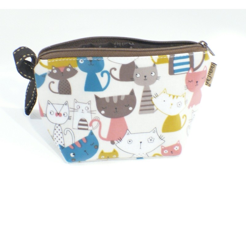 Cosmetic Bag, Toiletry Bag - (Multicolored Cat Motif) - 6 L x 4 W