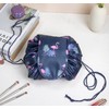 Cosmetic Bag with Drawstring, ONEGenug Makeup Bag, One-Step Organiser Makeup Bag for Lazy Women, Dark Blue Flamingo, Cosmetic bag