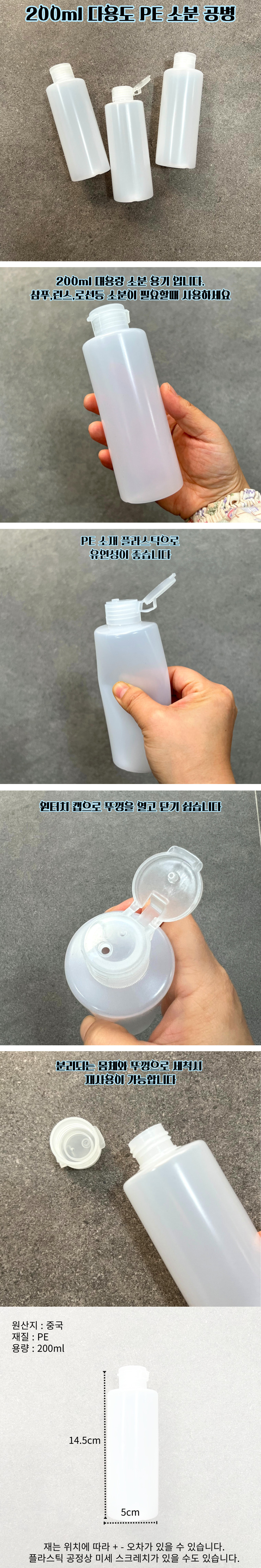 Cosmetic Container Empty Bottle Travel Bottle Plastic Container One-Touch 200ml PE 6ea
