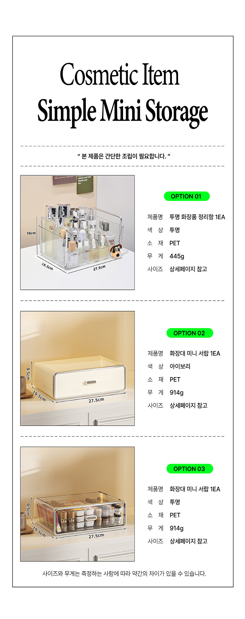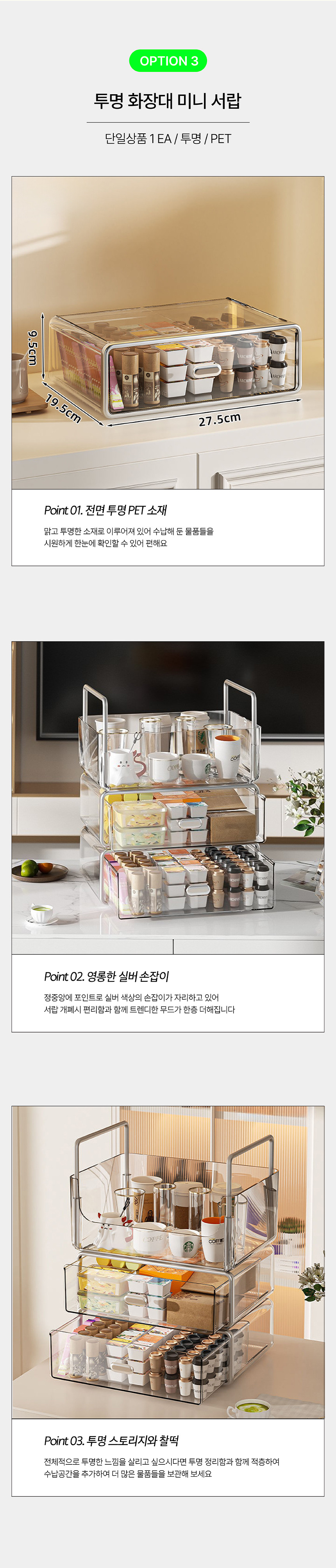 화장품 정리대 투명정리함 화장대 미니서랍 보관함 - 투명정리함