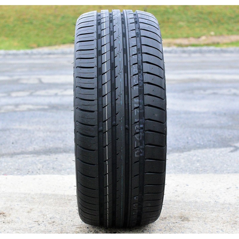 The optimal tread design improves the controllability. The shoulder tread pattern and the center rib upgrade the grip on the road surface, which boosts the steering responsiveness and driving stability. In this manner, the tire is quicker and more precise in its response to the driver's commands, while the structure is secured against the driving pressure affecting the model. The shoulder tread block placement firmly grips the road surface with extra biting edges, optimizing the cornering and maneuvering ability and power. The maintained surface contact and the stronger internal structure keep the ideal tire shape under high speed pressure. This allows the tire to increase the overall high speed durability.