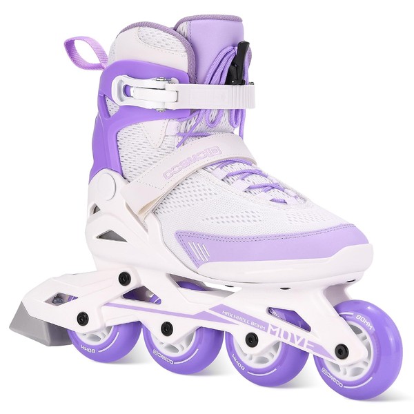 COSMOID Women's Adult Fitness Inline Skate, Outdoor Street Blades Roller Adult Female, Professional Fitness Roller Skates Blades, White and Purple,Size 5-12,Move