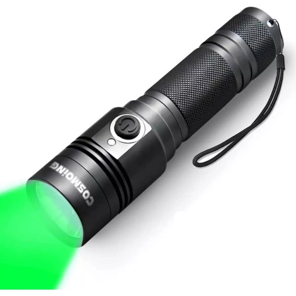 cosmoing Green LED flashlight Rechargeable, IP65 Waterproof Torch (Battery NOT Include)
