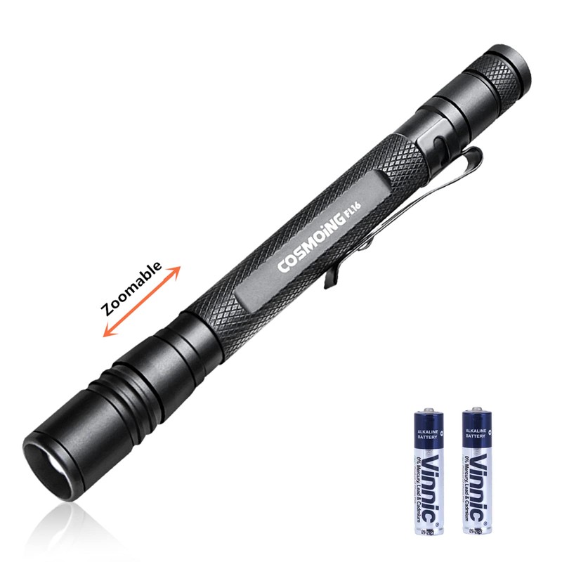 COSMOING LED Pen Flashlight, Zoomable 3 Modes Pen Light Flashlight with 2AAA Battery, Waterproof Pocket Size Flashlight Perfect for Emergency, Inspection, Repair
