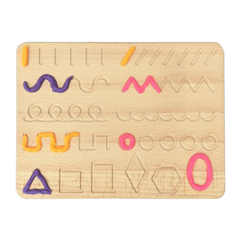 TACTILE: Tracing path enables to follow with fingers or provided wooden stylus. Alternatively fill in with colorful beads or different grains.