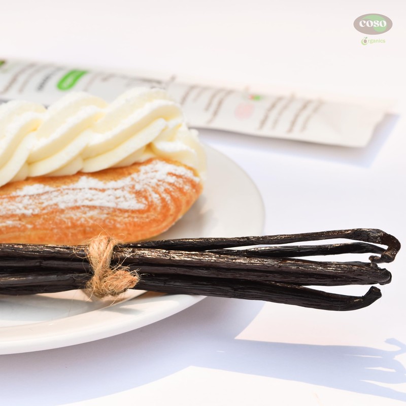 COSO Organics - 10 Organic Madagascar Vanilla Bean Pods, Certified Grade A, 14-16cm, Black and plump, for Baking, Extracting and Infusing