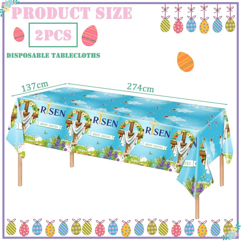 COSORO 2pcs 137 * 274cm Plastic Easter Tablecloth Waterproof,Easter Decorations Table Cloth Rectangle Blue Cross Easter Tablecloths Party Table Cover for Easter Party Supplies Table Decorations