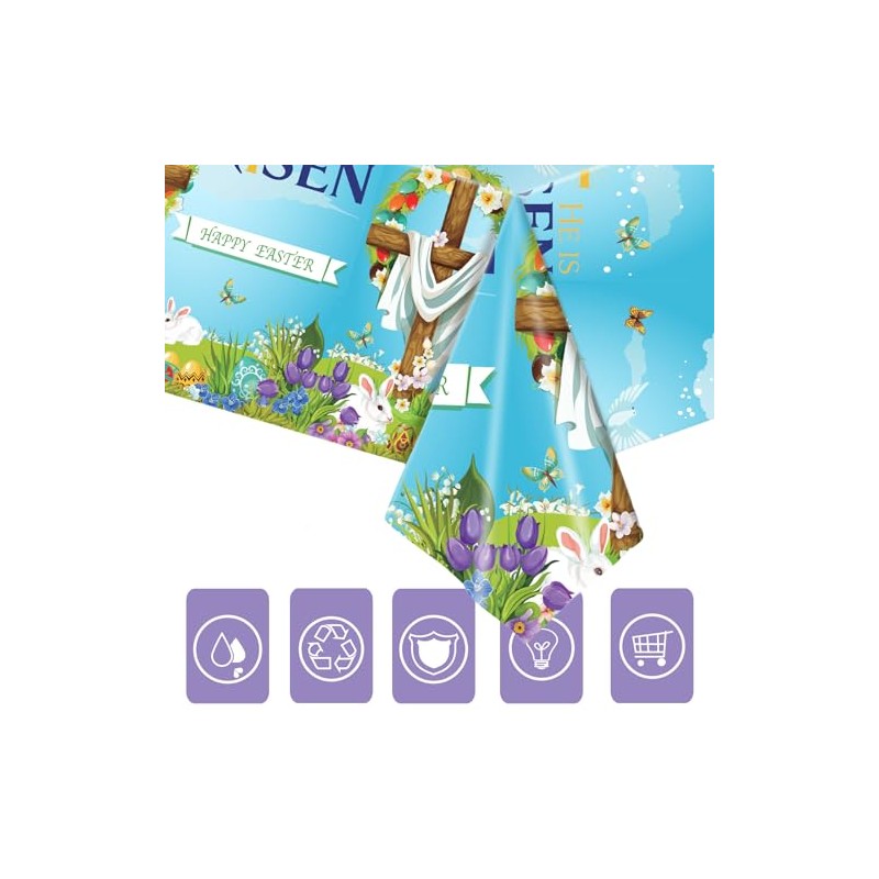 - 【Design】:this Happy Easter party tablecloths are printed with blue colour and cross designed patterns, which can strengthen the atmosphere of your Easter party, and make your time more joyful and memorable。