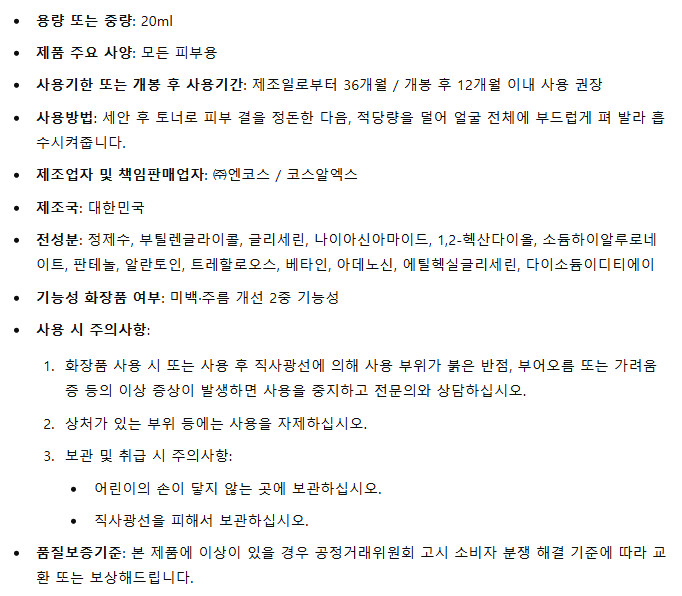 - for functional cosmetics, enter whether examination by the Ministry of Food and Drug Safety is required according to the Cosmetics Act (whitening, wrinkle improvement, UV protection, etc.): N