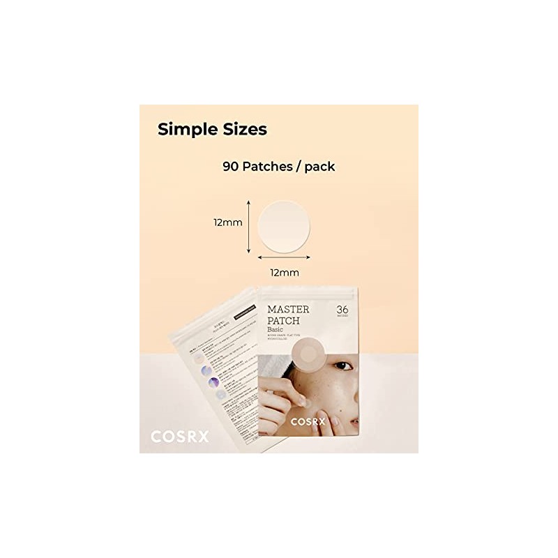 COSRX Master Patch Basic Value Pack, Overnight Acne Patch Hydrocolloid, Blemish Spot Sticker for Face, Strong adhesion & Thicker Spot Cover, 1 Sizes (90 Count)