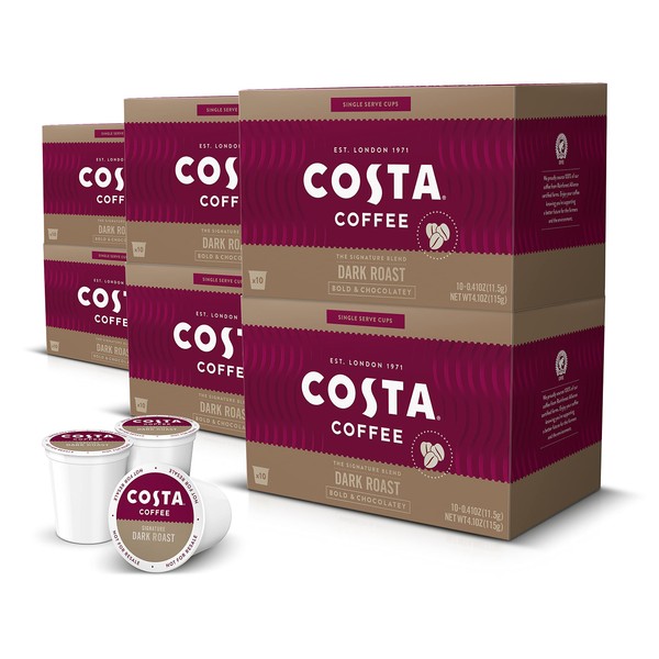 Costa Coffee Single Serve Pods Compatible with Keurig K-Cup Brewers Dark Roast, 60 count