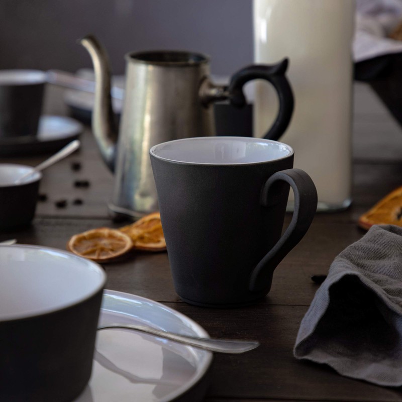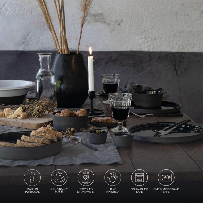 - LAGOA ECO GRÉS COLLECTION - Lagoa Eco Gres is made of Eco Gres, a proprietary clay, composed of recycled materials and completely sustainable featuring contrasting glazes, matte and dark grey on the exterior and translucent white and black on the interior. The textured exterior adds a warm touch to this contemporary collection which is perfectly imperfect in shape and naturally tactile balancing handcrafted artisanal elements with modern finishes