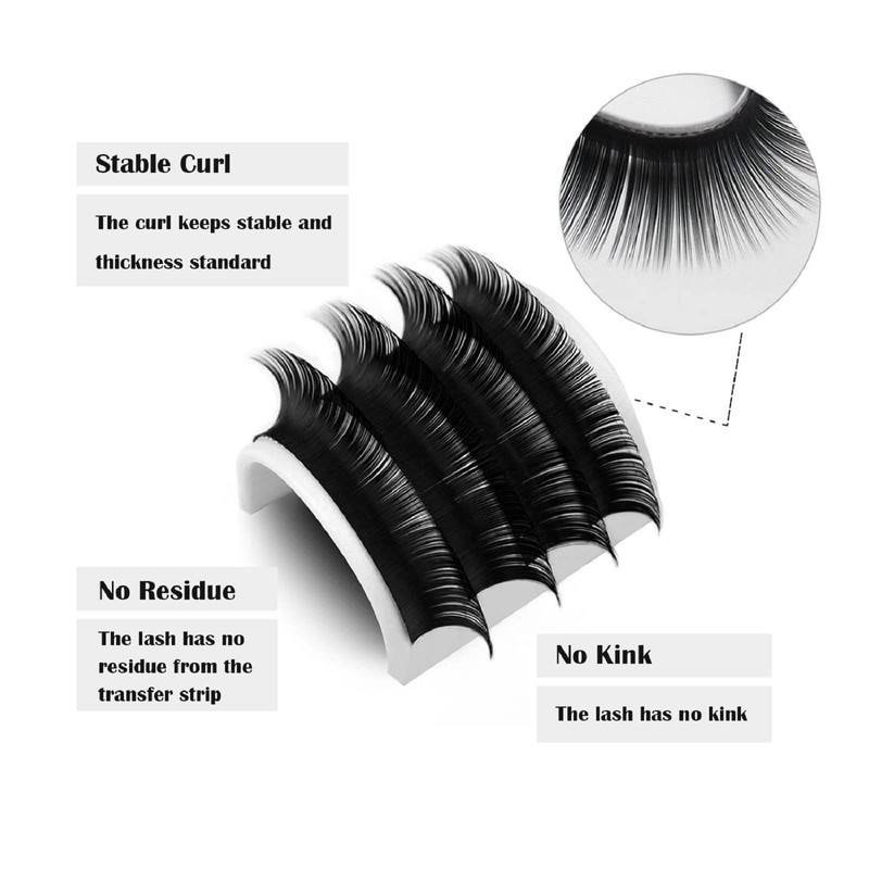 - Stable Curl: Our lash extensions have been double heated during manufacturing to keep its perfect curl, not easy to deform with proper care. Long time retention (more than one year) and waterproof.