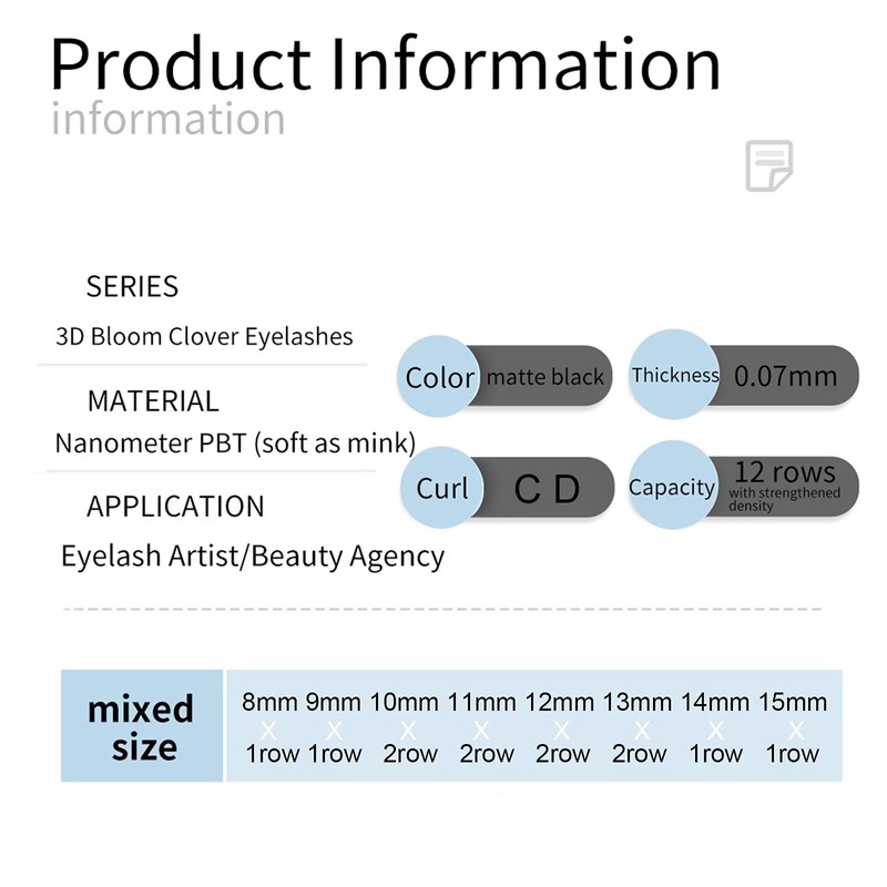 - 3D W Shap Clover Lash : Weaved by 3 single lashesl, very similar to 3d premade fans long stem lash, The number of 3D clover lash is 7 times that of premade fans lashes. 1 tray eyelash can be used on 10-15 customers.