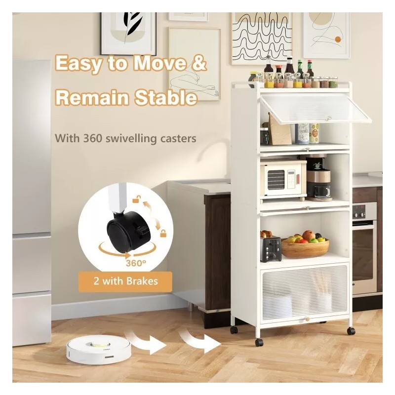 ● Easy to Move with 4 Universal Casters: Sits on 4 smooth rolling casters, 2 with brakes, the kitchen storage cabinet can be moved in all directions, or be stopped in place for a steady stance. And it is also a breeze to clean the floor underneath!