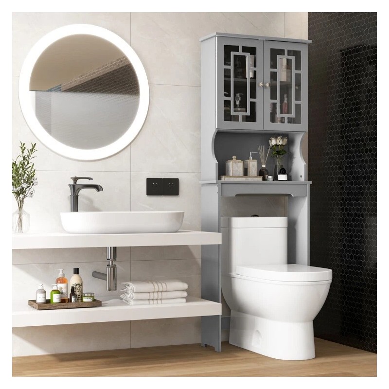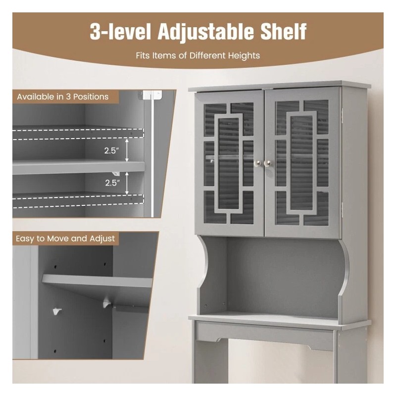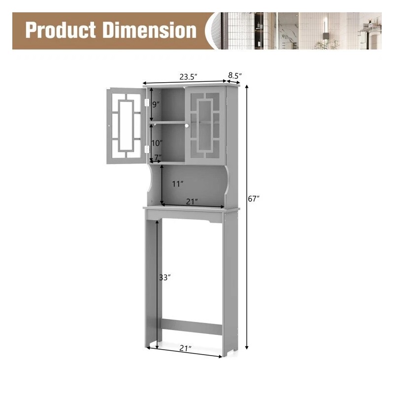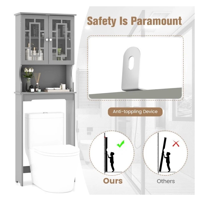 ● Ample Storage Space: This bathroom space saver is designed to save space. The over-toilet design creates Additional Storage for toilet setup. Plus, the over-the-toilet space saver is equipped with a cabinet and open cube. So, it is great for storing and organizing linens, toiletries, and bath essentials like soaps, shampoos, body wash, and more. What's more, the adjustable shelf in a cabinet fit different item storage requirements. With an intimate glass door design, this bathroom space saver non only can keep dampness out of the cabinet, but convenient to find what you need.
