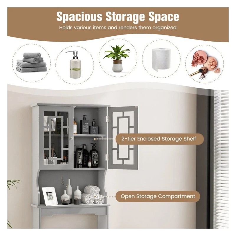 Costway Bathroom Over The Toilet Space Saver 2 Tier Storage Cabinet W/ Adjust...