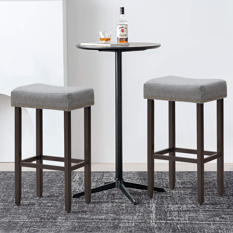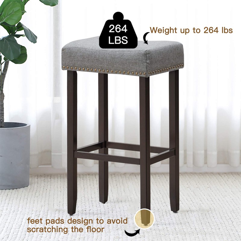- [Comfortable Upholstered Seat] These counter height stools set of 4 are filled with high density foam to give you a more comfortable sitting experience.And the wear-proof and breathable mixed linen and cotton fabric is covered on the top of seat.These materials are non-toxic and odorless under high-quality manufacturing.