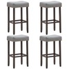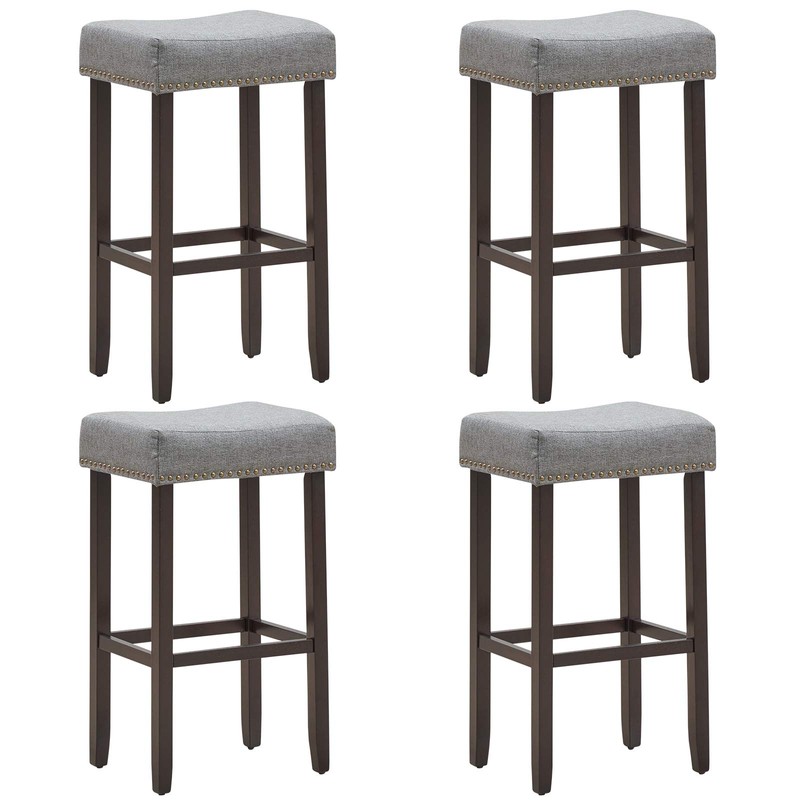 COSTWAY Counter Height Bar Stools Set of 4, 29-inch Height Backless Saddle Stools with Brass Nailhead Trim, Thick Cushion, Solid Wood Legs, Modern Bar Stools for Kitchen Island Bistro, Grey
