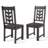 Costway Dining Chair Set of 2 w/ Rubber Wood Frame & Leaf-shape High Back for Kitchen