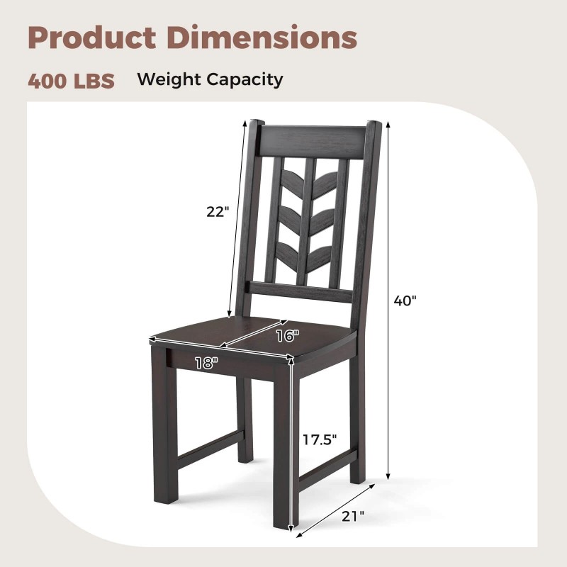 The dining chair features an innovative "leaf-shaped” backrest, with a unique and eye-catching design that stands out. The high backrest conforms to ergonomics, providing protection for your back and spine, helping you maintain a proper sitting posture. Furthermore, the symmetrical leaf-shaped backrest is designed to fit the contours of your back, promoting heat dissipation and offering you the best seating experience. Crafted from 100% solid rubber wood, the dining chair is sturdy and long-lasting. Thanks to the reinforced crossbars and thickened legs, each chair has a strong weight capacity of 400 lbs. With its minimalist silhouette and elegant style, the kitchen chair set can complement various type of furniture, adding a touch of luxury to your home. It is perfect for use in kitchens, dining rooms, offices, and other areas.