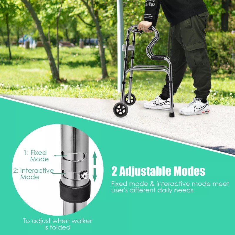 Costway Heavy-Duty Folding Wheeled Stand-Assist Walker Aluminum Alloy Gray