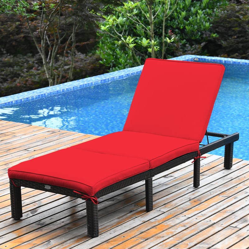 COSTWAY Patio Rattan Lounge Chair, 6-Gear Adjustable Chasie Lounge, Outdoor Recliner for Deck, Backyard (Red)
