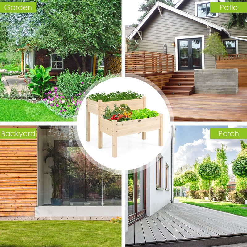 COSTWAY Raised Garden Bed, 2-Tier Wooden Elevated Planter Box Stand with Legs for Vegetables, Flowers Herbs, Outdoor Indoor Garden Bed Kits for Backyard, Patio, Balcony Patio, Natural