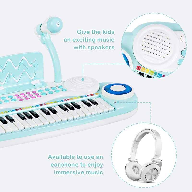 Costzon 37-Key Kids Toy Keyboard Piano with Detachable Legs, Bench, Music Score, Flash Light, Build-in MP3 Songs, Microphone, Record Playback for Birthday (Blue)