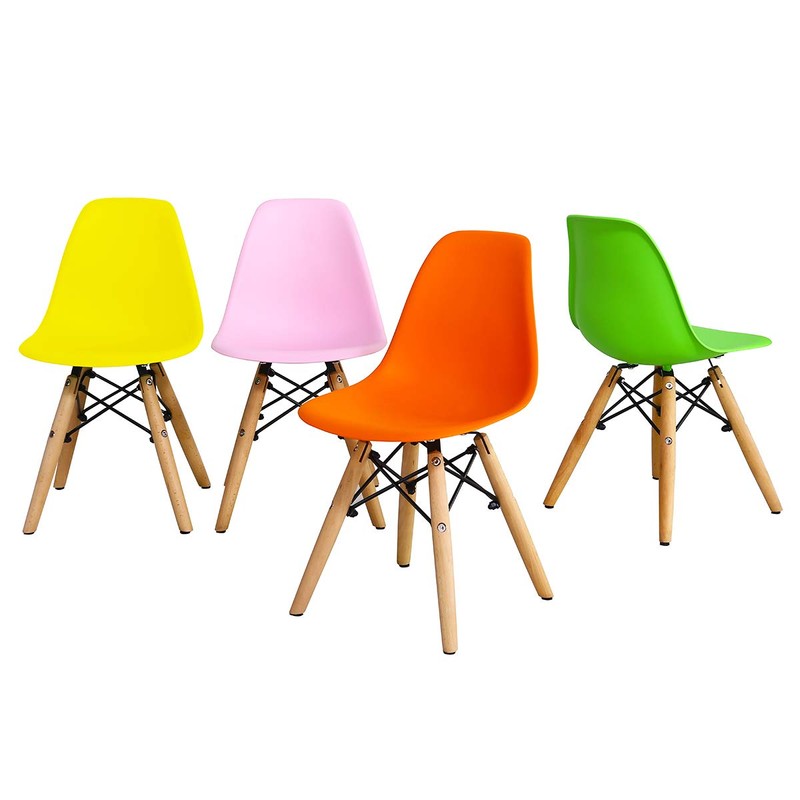 Do the children want their own lovely furniture? Our table and chairs set is a perfect choice for you. Includes a round table and four armless chairs that are good for children to eat, write, draw, read, puzzle and play by themselves. The combination of wood legs and iron frame of the base adds to the aesthetic value of the design while ensuring the stability of the set. The chairs feature ergonomic curved back, which perfectly adapts to the shape of the body. A round and smooth table top protects your child from harm. And non-slip rubber pads under the legs protect the floor from being scratched and add the stability. It is the best gift for children. Don't hesitate to buy it!
