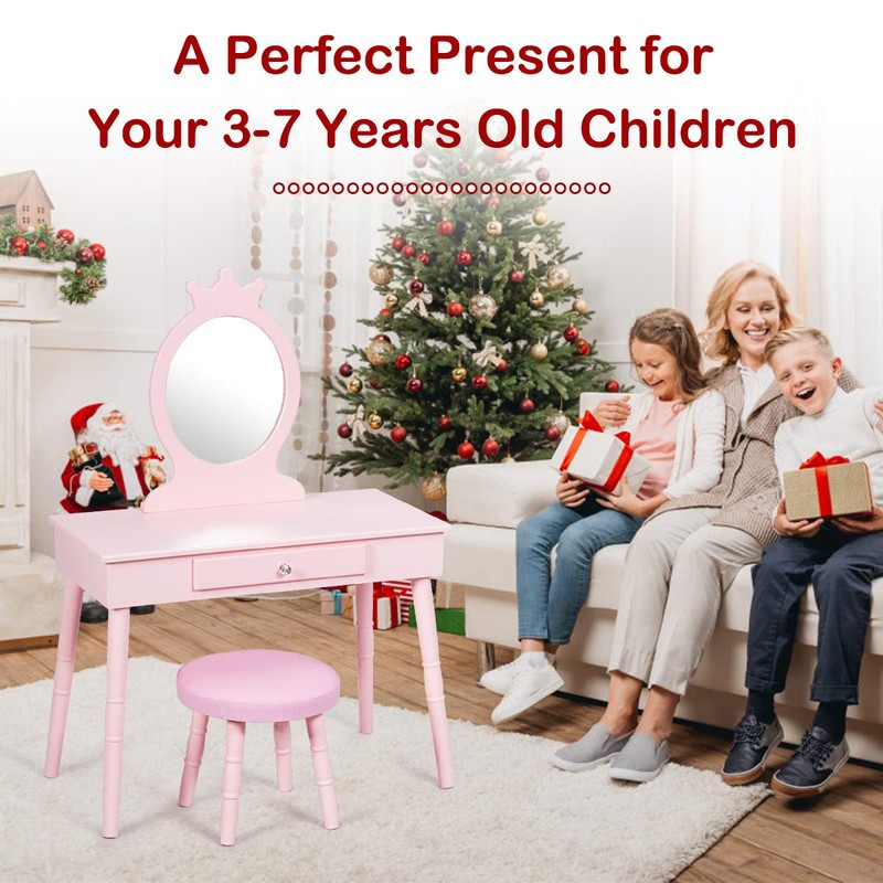 - Perfect Gift for Kids: Every girl has a princess dream to make up or dress up pretty. Our pink vanity set is a good company for kids to make up by themselves. It is ideal to choose this vanity set to give your kids as birthday or Christmas gift. After receiving our parcel, you can wrap the box with cute paper to leave a big surprise for your kids!