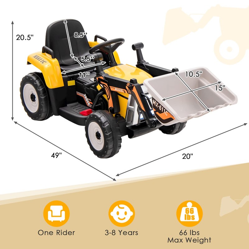 - Realistic Appearance with Working Bucket: Our kids ride on toy car looks like a miniature of a construction vehicle. Together with the adjustable digging bucket, the 12V authentic battery powered excavator brings children immersive role-play experience while helping them develop hand-eye coordination.