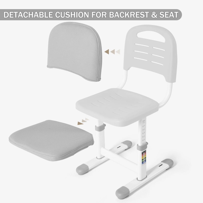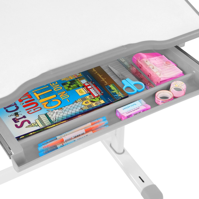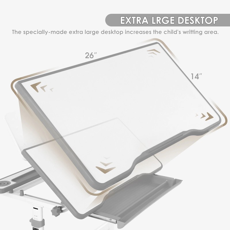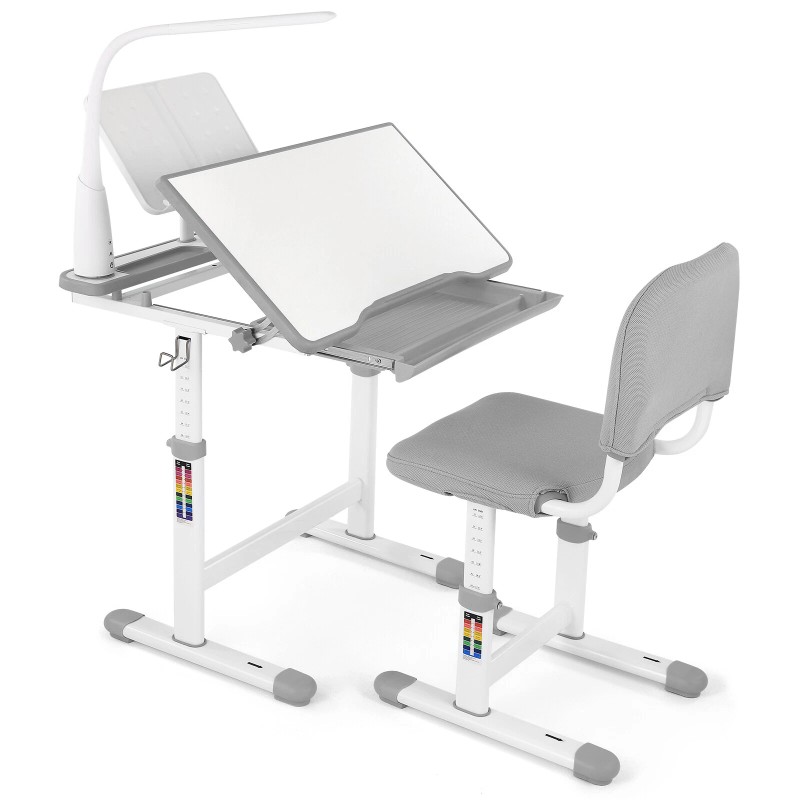 COSVALVE Gray Height Adjustable Kids Study Desk Table Chair Set w/Lamp,Drawer,