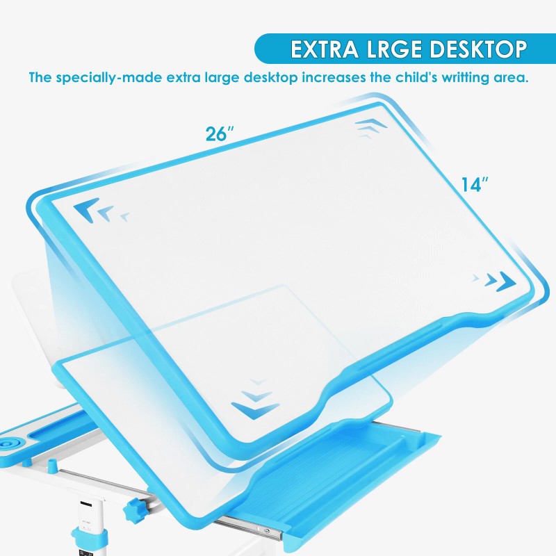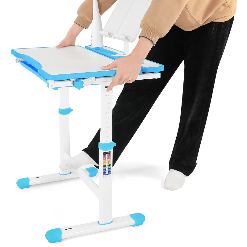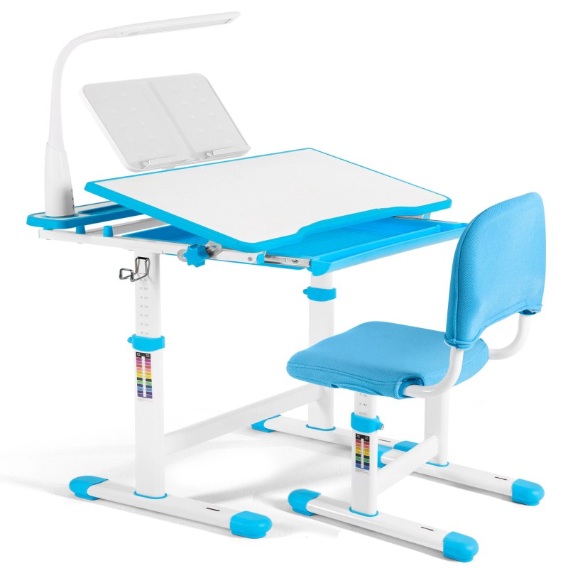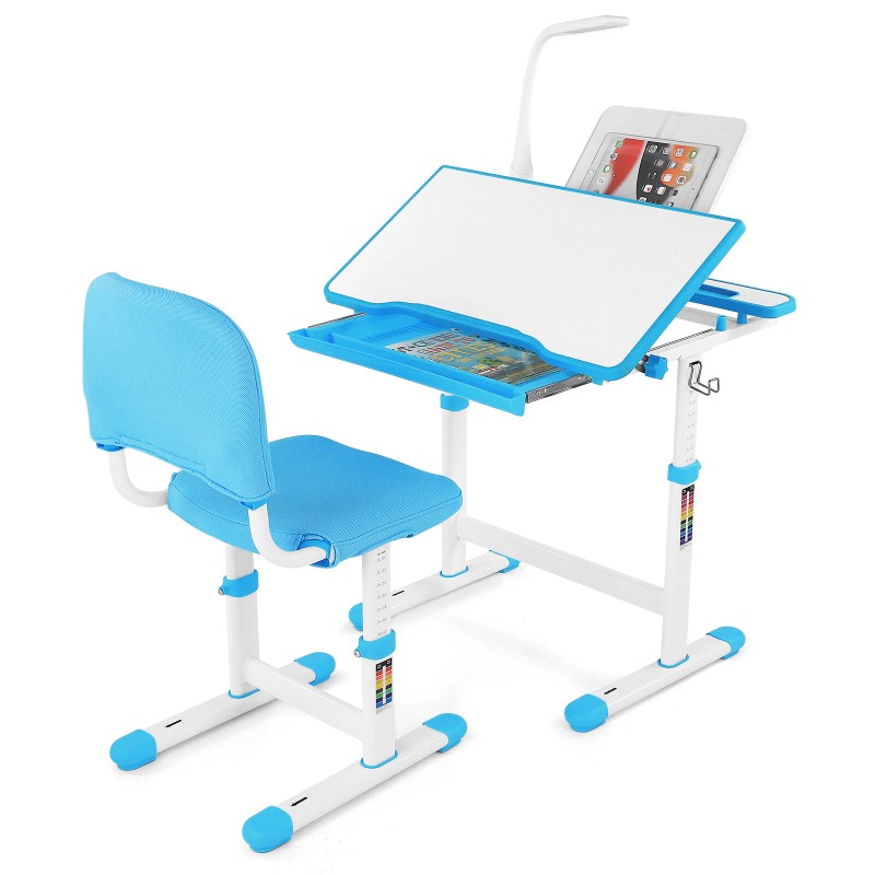 COSVALVE Height Adjustable Kids Study Desk Table Chair Set w/Lamp,Drawer,