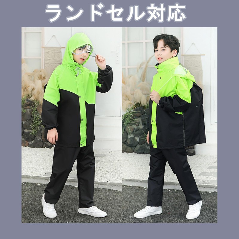 COSWIN Raincoat, Kids and Children, Top and Bottom Set, Rain Suit, Compatible with School Bags, Stylish, Windproof, Waterproof, Night Reflective, Elementary School and Middle School Students, Unisex,